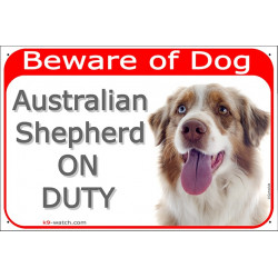 Your Red Merle Australian Shepherd's picture will look fantastic displayed on your gate as a warning to visitors with this wonderful sign "Beware of dog"!Available Sizes : 16 x 12 cm - 24 x 16 cm