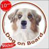 ![]() | White & red merle Aussie, circle car sticker "Dog on board" 15 cm SKU : 32B90-A | In stock, Ready to ship "right now"! |