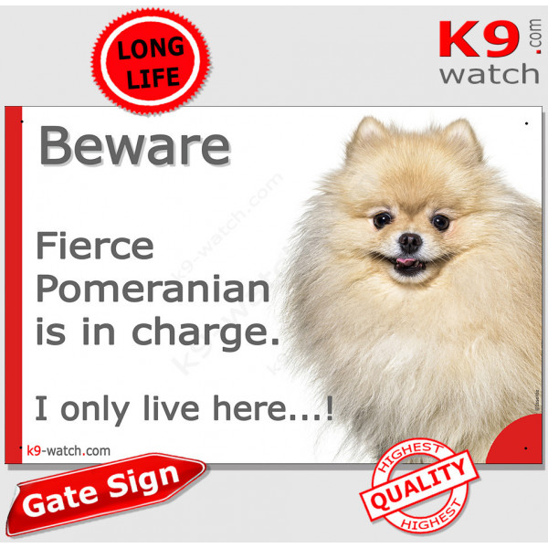 Is your beige creme Pomeranian funny? Let people know with this original and fun sign to be displayed at the entrance!