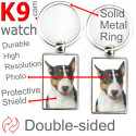 Metal keyring with your tricolor English Bull Terrier's photo on both sides, so you can always admire your pooch no matter where your keys are! Strong but light in the hand, it'll go everywhere with you!